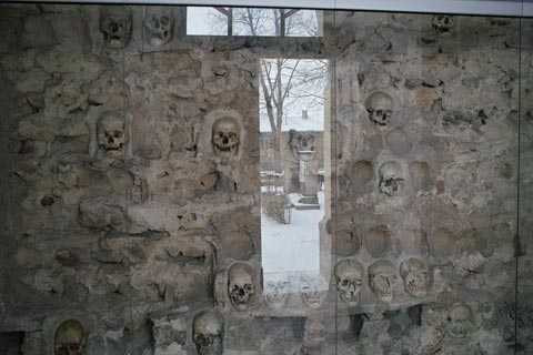 | Tuy nhiên vẫn còn 58 hộp sọ gắn trên tường ngọn tháp |