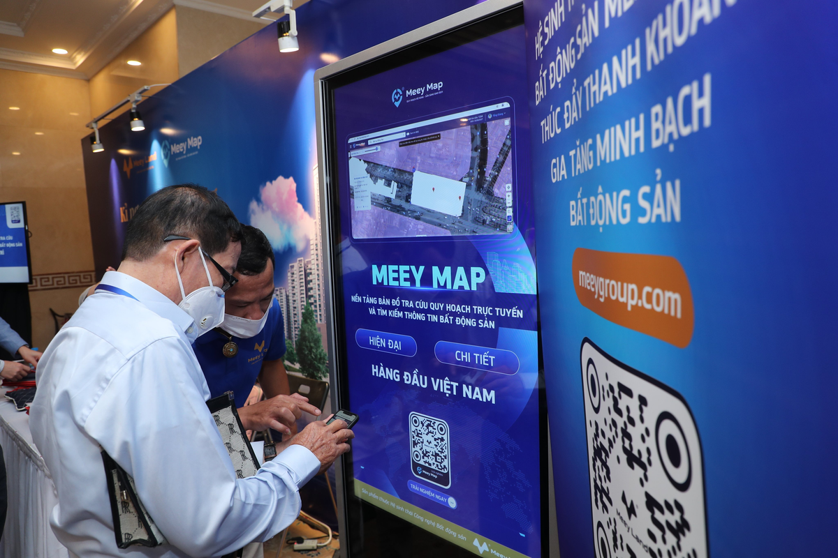 Người dùng thích thú trải nghiệm sản phẩm Meey Map tại VNITO 2021.