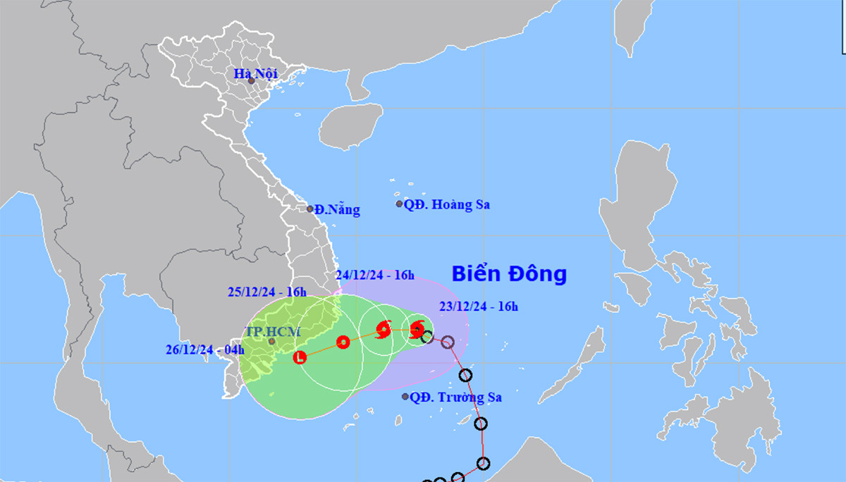 "Theo các dự báo hiện tại, bão số 10 hướng về khu vực các tỉnh từ Phú Yên đến Bà Rịa-Vũng Tàu. Tuy nhiên, khi chuyển hướng xuống phía Nam, bão sẽ suy yếu thanh áp thấp nhiệt đới, ít có khả năng ảnh hưởng trực tiếp đến đất liền nước ta", ông Hoàng Phúc Lâm, Phó Giám đốc Trung tâm Dự báo khí tượng thuỷ văn quốc gia thông tin.