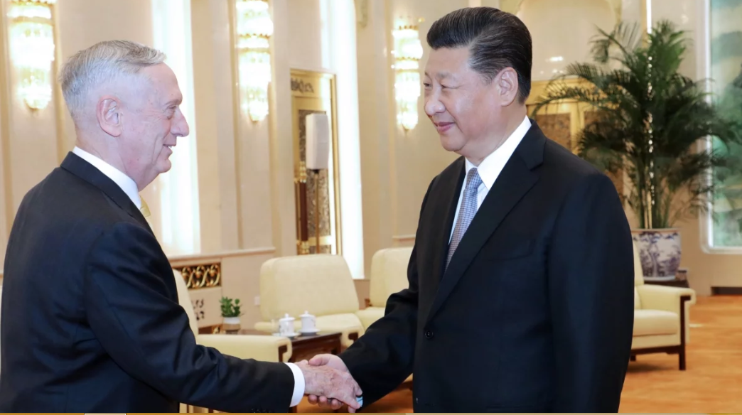 Bộ trưởng Quốc phòng Mỹ James Mattis và Chủ tịch Tập Cận Bình. (Ảnh: Tân Hoa Xã)