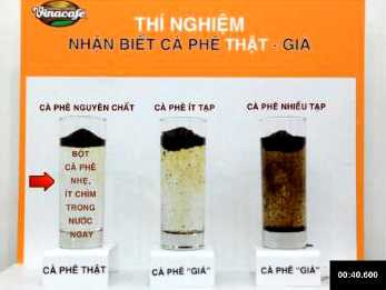 Trên các trang báo mạng vừa tung một đoạn clip hướng dẫn phân biệt cafe thật – giả, do lãnh đạo và chuyên gia của Công ty cổ phần Vinacafe Biên Hòa thực hiện để khẳng định sản phẩm của mình là thật. Tuy nhiên, các nhà khoa học lại chỉ ra một sự thật khác.