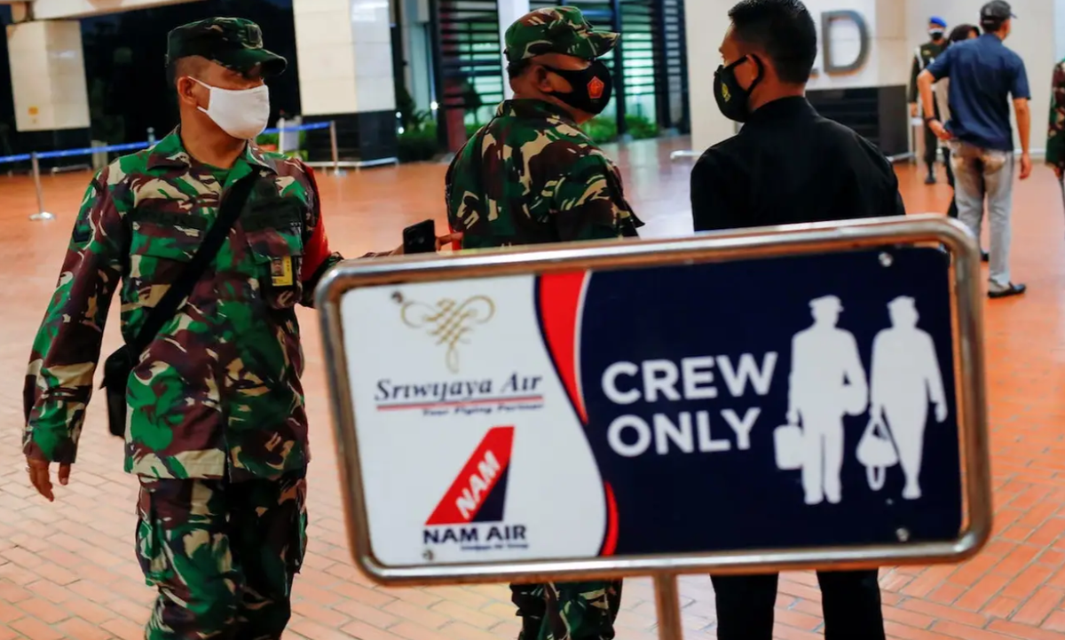 Các binh sĩ Indonesia tại sân bay quốc tế Soekarno-Hatta sau khi máy bay Sriwijaya Air mất liên lạc ngày 9/1. (Ảnh: Willy Kurniawan/Reuters)