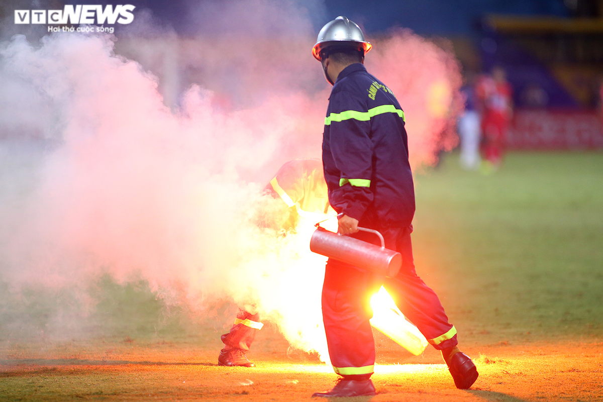Đây là lần đầu tiên trong mùa giải năm nay, pháo sáng xuất hiện. Và cũng gần 1 năm sau sự cố CĐV Nam Định bắn pháo gây trọng thương một nữ CĐV ở sân Hàng Đẫy, pháo sáng đỏ trở lại ở sân đấu này.