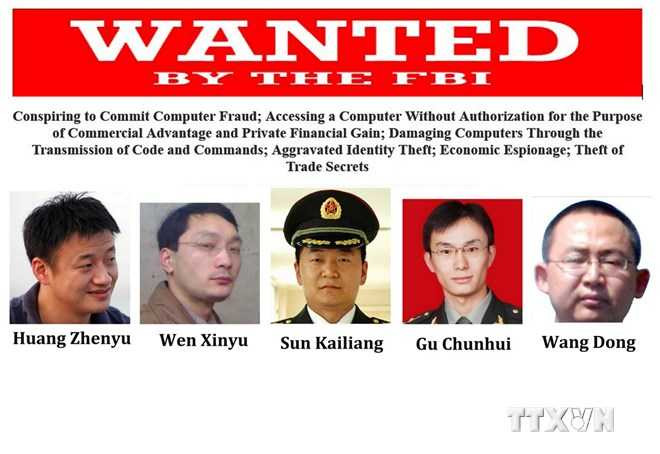 | 5 chuyên gia Trung Quốc bị Mỹ cáo buộc hoạt động gián điệp mạng |