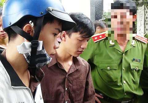 | Vũ Văn Tiến và Nguyễn Hải Dương khi được đưa tới dựng lại hiện trường vụ giết 6 người ở Bình Phước. |