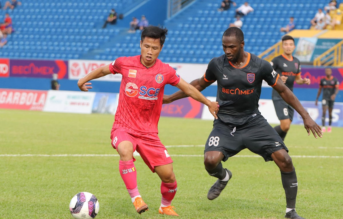 Sài Gòn FC (áo hồng) thua 4/5 trận gần nhất.