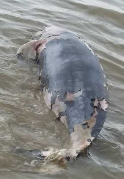 | Sau khi vòi rồng xuất hiện, một con cá heo trôi dạt vào bờ trong tình trạng đã chết. Ảnh: NLĐO |