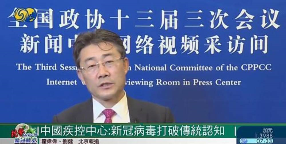 Ông Cao Phúc, Giám đốc CDC Trung Quốc trả lời Đài Truyền hình Phượng hoàng Hong Kong. (Ảnh chụp màn hình)