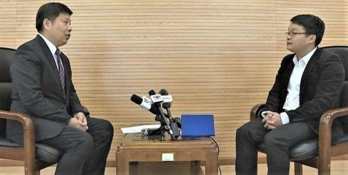 Ông Hứa Lợi Bình (trái) trả lời phỏng vấn phóng viên Báo Nhân Dân thường trú tại Trung Quốc.