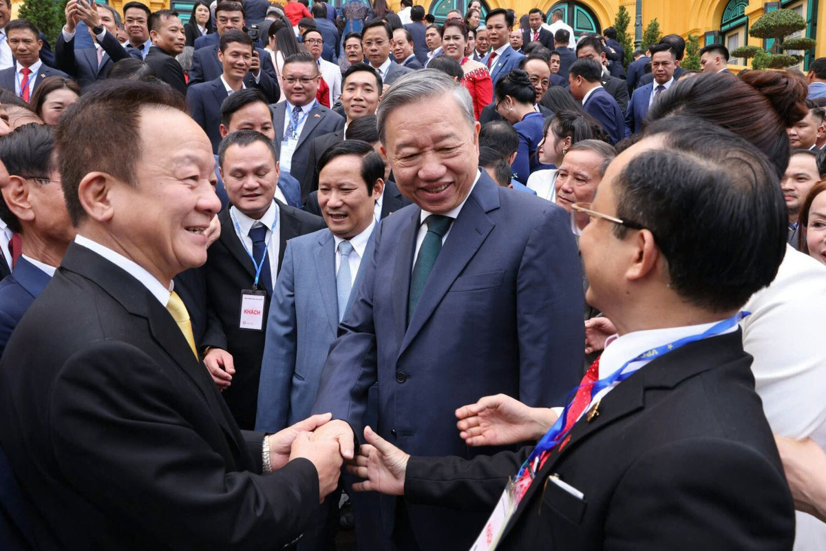 Tổng Bí thư Tô Lâm gặp mặt Đoàn đại biểu doanh nhân tiêu biểu của Liên đoàn Thương mại và Công nghiệp Việt Nam và Hội Doanh nhân Tư nhân Việt Nam ngày 11/10/2024. (Ảnh: TTXVN)