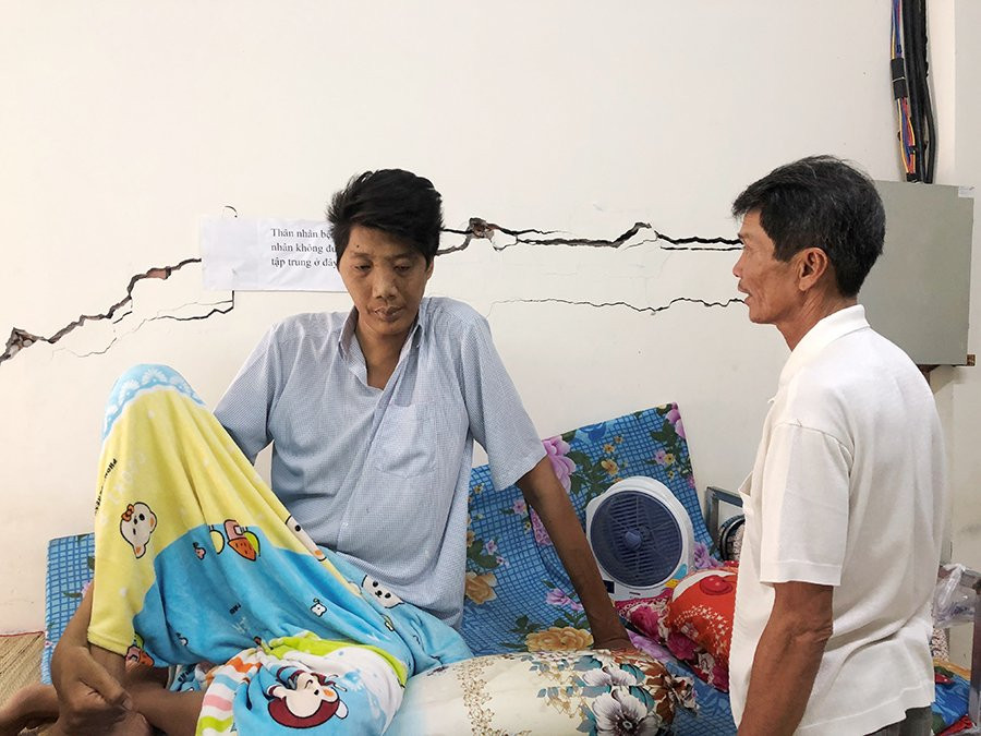 Bà Nguyễn Thị Hồng (mẹ anh Trung) xót xa kể: “Do ở một mình, không vợ con, cách đây mấy năm Trung bị té làm trật khớp gối chân, rồi tiếp đó Trung lại bị té lật bàn chân trái. Cả 2 lần Trung đều không cho ai hay, mặc cảm không đi viện nên hiện 2 chân Trung đi lại khó khăn”.