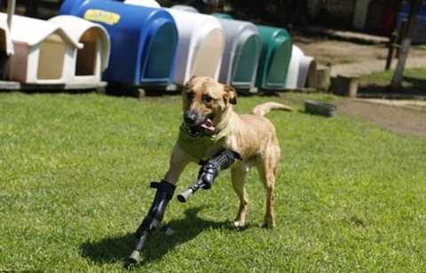 Chú chó xấu số đã bị những tên buôn ma túy tàn ác cắt mất đôi chân để thử nghiệm. Những người yêu thương động vật đã trang bị cho chú một cặp chân giả để có thể tiếp tục chạy nhảy, vui chơi như trước.