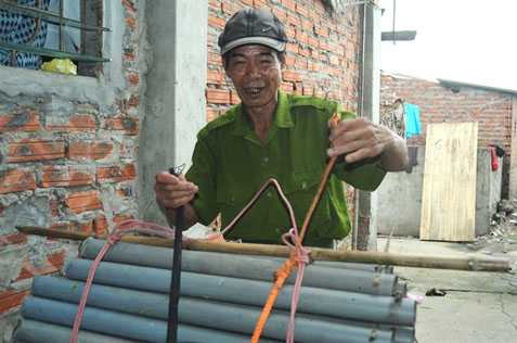 | Ông Sáng chuẩn bị đồ nghề đi bắt lươn |