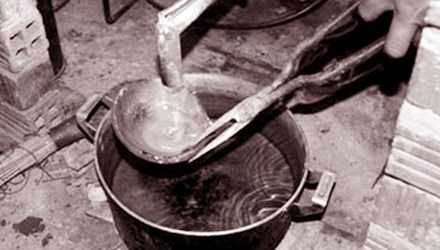 Người dân ở Vạn Giã vẫn thường đồn nhau rằng: “Mỗi lần ông Tùng chở đá, đất về, thế nào cũng luyện ra vàng!”. Lúc chúng tôi đến, gia đình ông Cao Thanh Tùng đang hì hục luyện vàng. Rất bất ngờ nhưng cũng cởi mở, ông không ngần ngại mời chúng tôi vào nhà để kể lại chuyện nghề của mình.