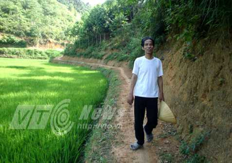 Nhà anh Tiến “voi” nằm ở cuối làng, phải cuốc bộ lòng vòng qua những con đường mòn nhỏ xíu bám sát vào núi.
