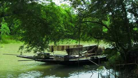 | Thuyền của ngư dân neo đậu ven sông Chitra ở ngoại ô Narail, chờ đêm đến để bắt đầu một buổi đánh cá độc đáo. |