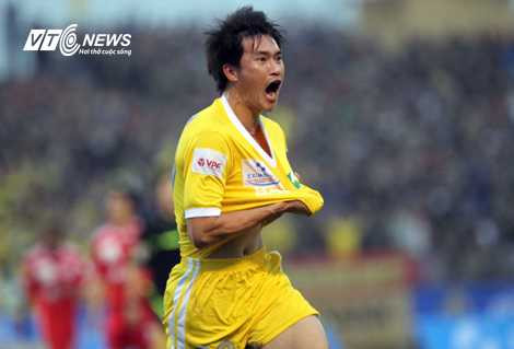 | Niềm vui vỡ ào của Công Vinh khi mở tỷ số cho SLNA (Ảnh: Quang Minh) |
