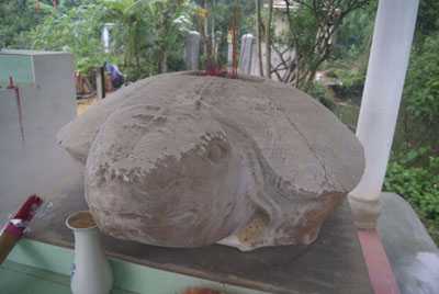 | Ngài" rùa đá được khắc chữ "vương" vẫn còn dấu tích rõ ràng |