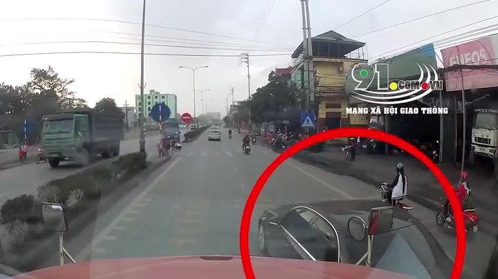 Ô tô lưu thông trên Quốc lộ 18, TP Cẩm Phả, Quảng Ninh chuyển làn không quan sát bị xe container phía sau tông bay lên dải phân cách.
