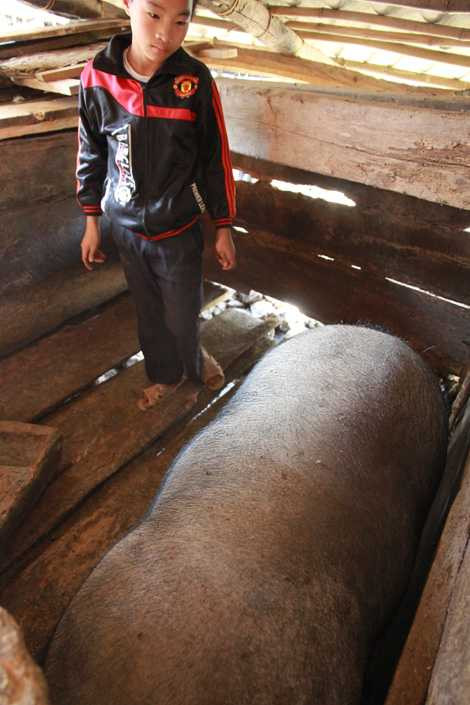 Mặc dù người Mông còn nghèo, thiếu ăn, song ít khi họ bán những con lợn khổng lồ này. Họ thường nuôi đến tết để mổ thịt, cả nhà cùng ăn.