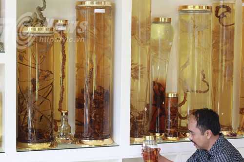 | Anh Tuyền có sở thích ngâm cả cây sâm trong bình rượu |
