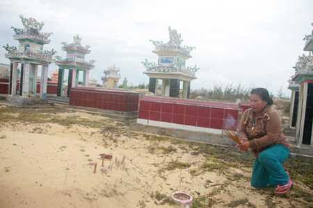 Do nỗi đau một lúc xảy đến quá lớn làm cho người phụ nữ vùng cát biển này chịu không nổi nên có lúc chị khóc nói: "Anh chết rồi mà anh cưới cho em thêm "chồng" nữa, để em lo cho hai người chồng ở bên!". Vậy cứ đến ngày giỗ hay ngày Tết, chị ra thắp hương phần mộ chồng mình, không quên thắp cho phần mộ người ngư dân kia một nén hương như trách nhiệm với người đã khuất.