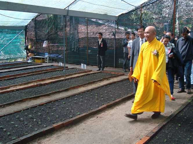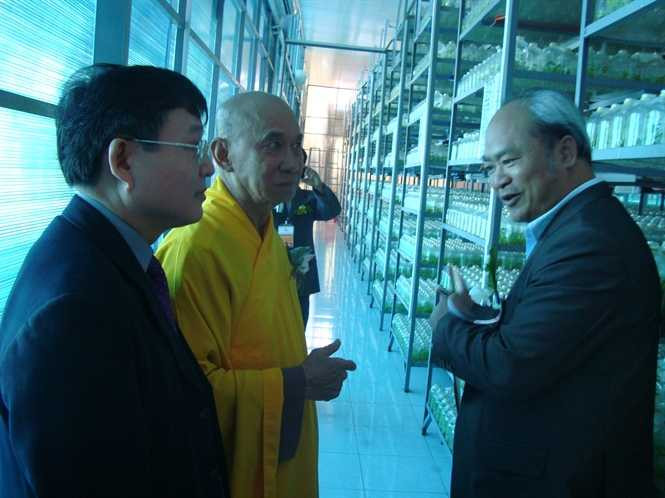 | Các nhà khoa học tham quan cơ sở nuôi cấy mô ở chùa Thanh Quang |