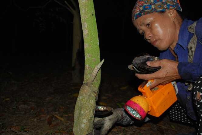 | Phải cắt sơn từ 1-2 giờ sáng, lúc thân cây nhiều nhựa nhất |