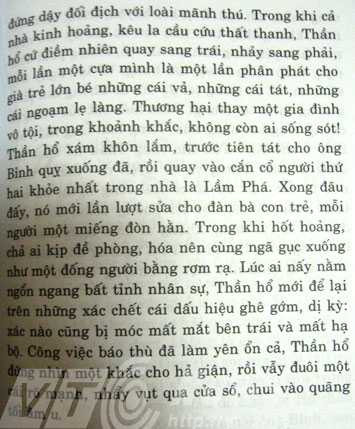| Một trang sách của nhà văn TchyA, miêu tả cảnh thần hổ báo thù tàn bạo |