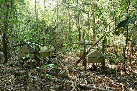 | Những chiếc quan tài trong “rừng ma”. |