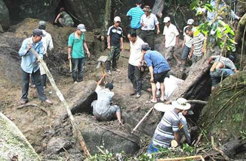 | Một nhóm phu trầm đang đào kỳ nam ở khu vực rừng Gộp Ngà (huyện Khánh Sơn, tỉnh Khánh Hòa) |