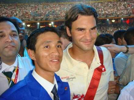| Nguyễn Đình Cương cùng Federer tại Olympic 2008. |