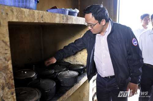Tại khu nhà bếp, hàng chục chiếc kiềng nấu ăn được xếp san sát vào nhau phần nào phản ánh cảnh đông đúc, chờ đợi của các em học sinh tại đây. Khu để đặt kiềng rộng gần 2 mét vuông, đặt được 8 chiếc bếp khi các em ngồi nấu ăn. Thầy Hải chia sẻ, các em học sinh phải tự lo lương thực cho sinh hoạt hàng ngày tại trường.