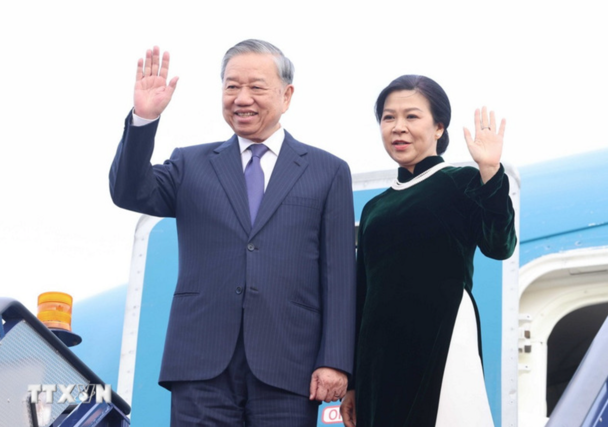 Tổng Bí thư Tô Lâm và Phu nhân rời thủ đô London về nước, kết thúc tốt đẹp chuyến thăm chính thức Liên hiệp Vương quốc Anh và Bắc Ireland. (Ảnh: Thống Nhất/TTXVN)