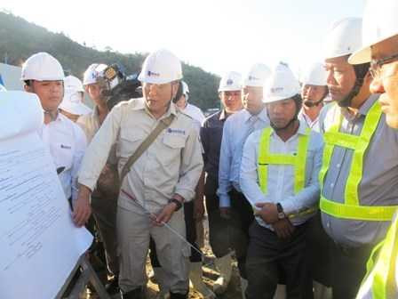Bộ trưởng Đinh La Thăng thị sát dự án hầm đường bộ Đèo Cả. |