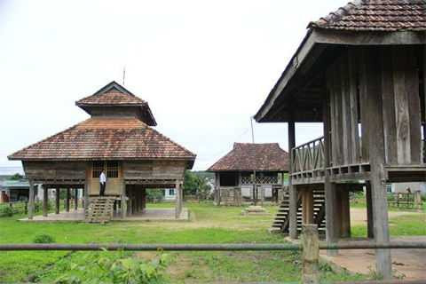 | Nhà Rông xây dựng theo kiểu “mẹ và hai con” của người Brâu nằm ở giữa biên giới 3 nước Việt - Lào - Campuchia |