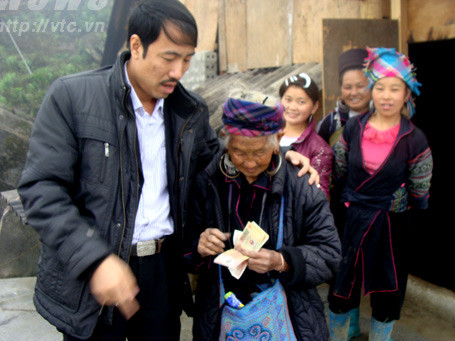 | Lương y Phạm Văn Thanh tặng quà cho cụ bà Hạng Thị Sông |