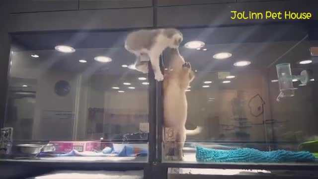 Mèo con không màng nguy hiểm, dũng cảm vượt rào để gặp mặt người bạn cún con của mình.