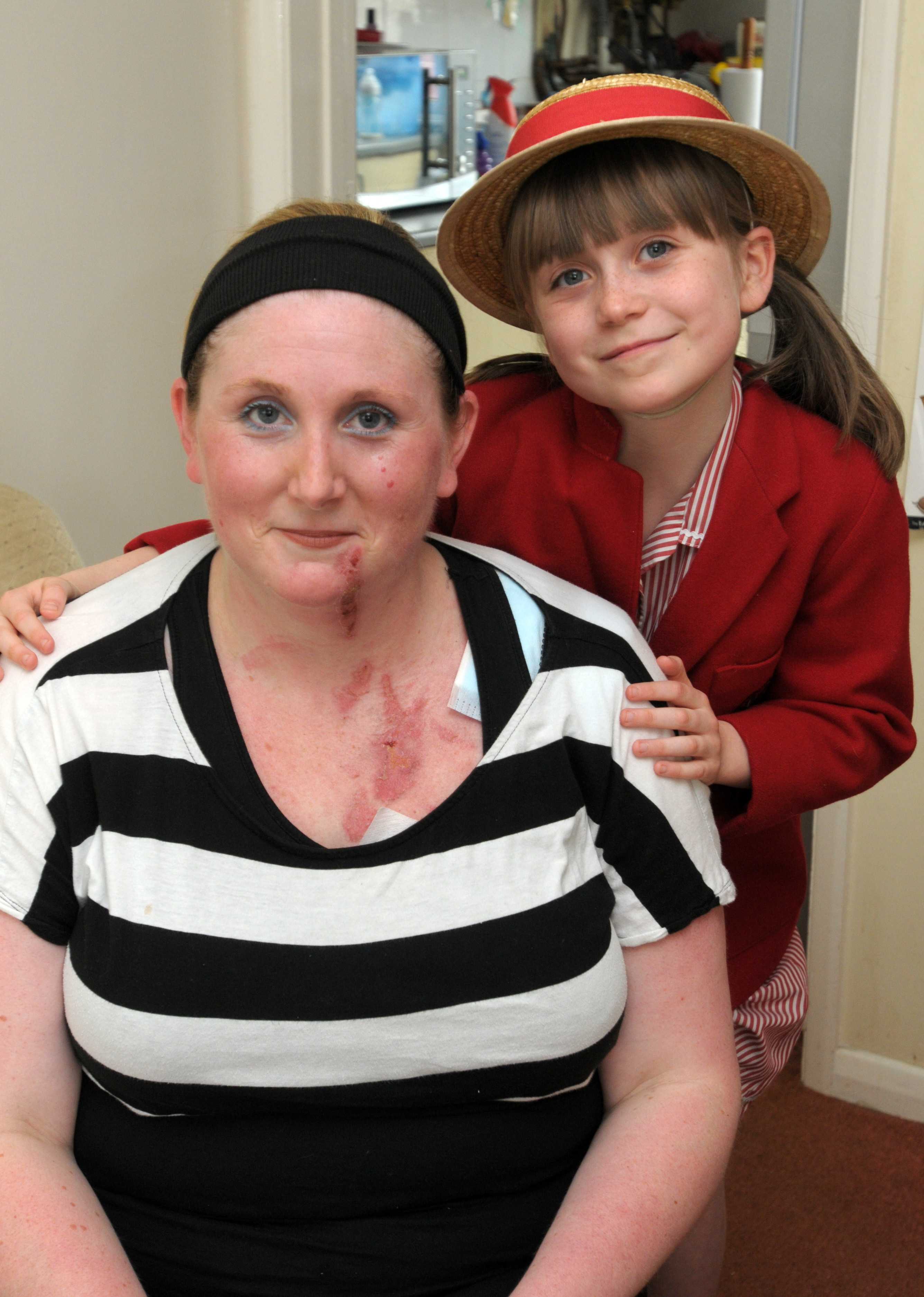 Tuy nhiên, nhờ sự gan dạ và hiếu thảo của mình, bé gái Ella Rake đã nhanh chóng đến cứu giúp mẹ. Không nề hà, bé tháo gỡ từng miếng thịt bò "nóng hổi", bị bắn ra và đang dính chặt trên mặt của mẹ. Thoạt sau đó, bé tức tốc dẫn mẹ vào nhà vệ sinh, tưới vòi nước lạnh lên vết thương, hòng xoa dịu những cơn đau cho mẹ.