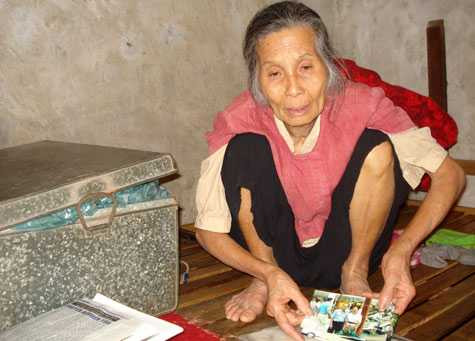 | Bà Nguyệt lật tìm lại những tờ giấy khen cô cháu Thảo đã từng đạt được |