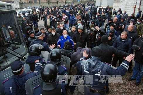 | Cảnh sát Ukraine cố gắng ngăn người biểu tình chiếm giữ trụ sở cảnh sát thành phố Gorlovka |