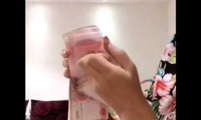 Người phụ nữ cầm một xấp tiền 100 nhân dân tệ trên tay và bắt đầu với “vũ điệu của các ngón tay” đầy mê hoặc.