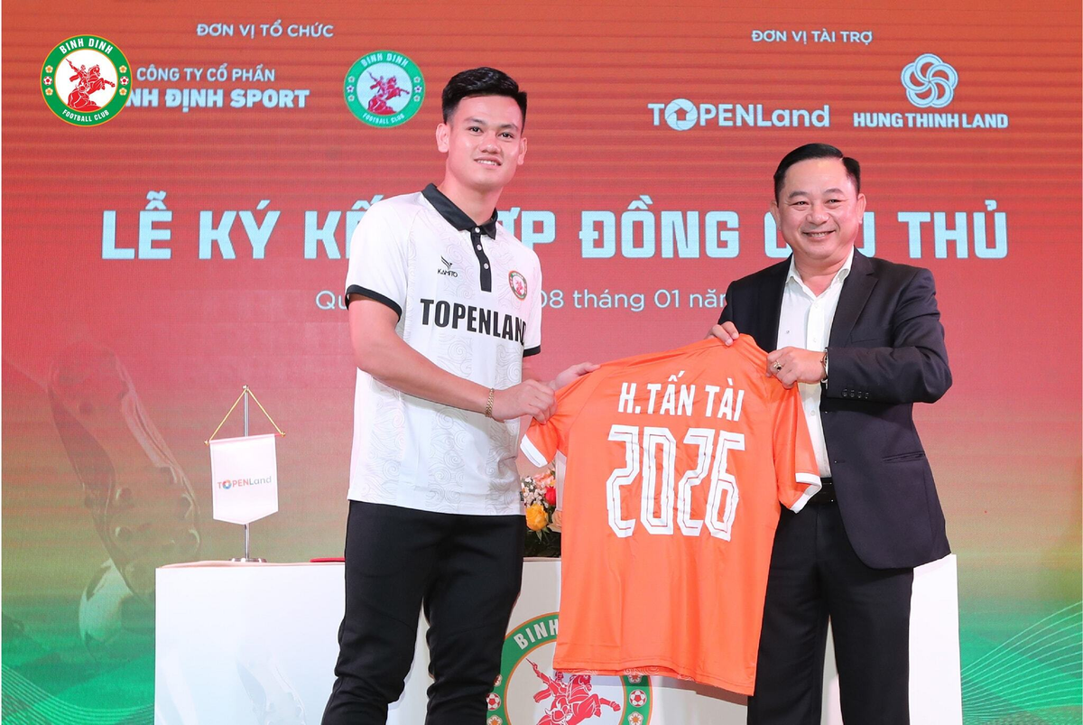 Cũng trong sự kiện này, đội bóng đất Võ công bố một bản hợp đồng quan trọng khác. Đó là hậu vệ Hồ Tấn Tài. Cầu thủ này gia hạn hợp đồng đến năm 2026 với đội bóng quê hương.