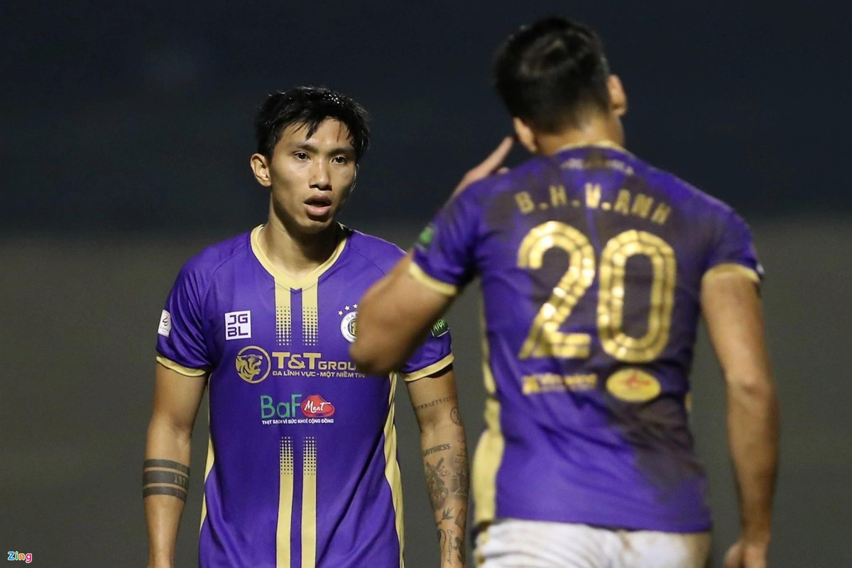 Đoàn Văn Hậu (trái) chỉ vừa trở lại thi đấu cho CLB Hà Nội ở vòng 23 lại bị treo giò ở vòng 24. (Ảnh: Bảo Ngọc)