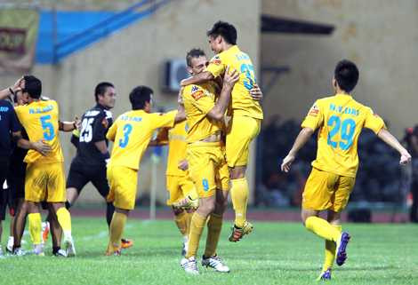 Trong khi đó ở sân Hàng Đẫy, chủ nhà CLB Hà Nội đã giành chiến thắng 2-1 trước Đồng Nai, vừa đủ điểm thăng hạng trước hai vòng đấu đồng thời kéo luôn ĐTLA lên theo.