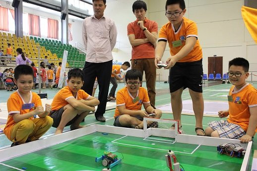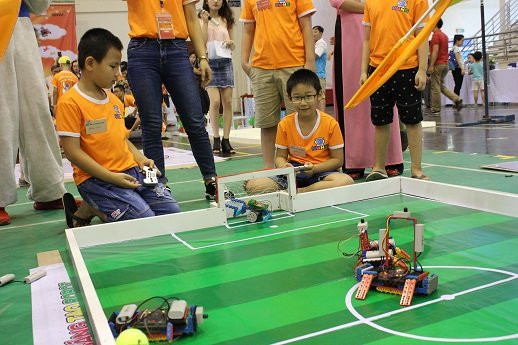Ngày 28/5, cuộc thi "Tôi sáng tạo Robot trẻ Việt Nam Lần 5" dành cho lứa tuổi thiếu niên, nhi đồng đã diễn ra sôi động với 16 đội thi đấu của Hà Nội và các tỉnh lân cận.