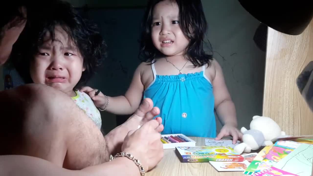 Clip: 2 bé gái lo cuống quýt, bật khóc khi thấy bố bị chảy máu
