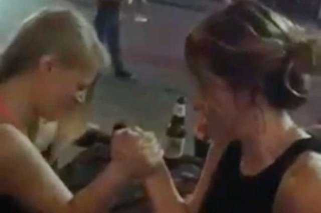 Hai cô gái người Anh hăng hái vật tay và kết cục đau lòng: một cô gái tay bị gãy làm đôi.