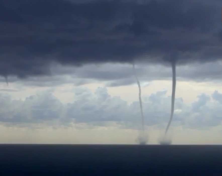 Clip: 2 vòi rồng khổng lồ trên biển như ngày tận thế