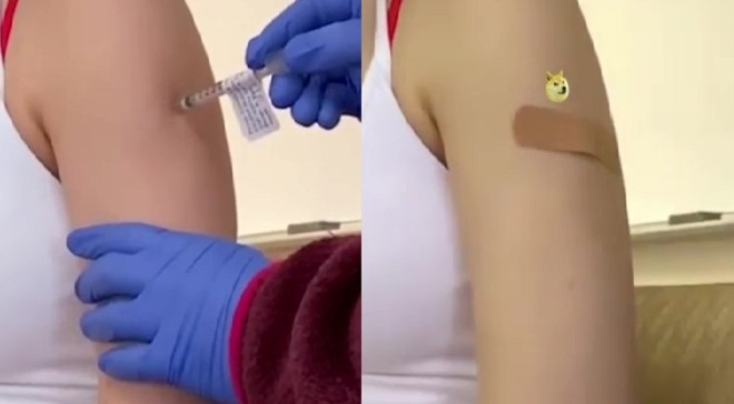 Nhiều người cho rằng cô gái xinh quá khiến bác sĩ nhìn nhầm chỗ, quên mất vị trí đã tiêm và dán băng dính sai.